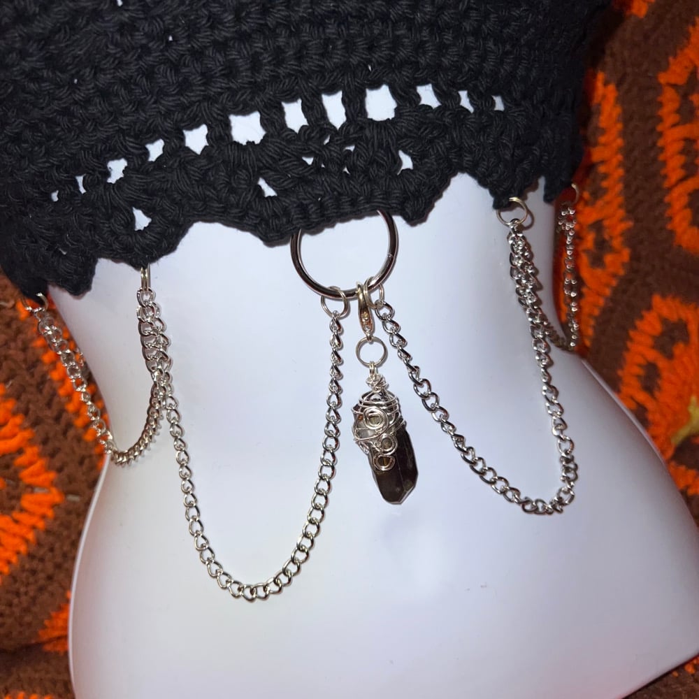 Fairy Fantasy Crochet Halter Top ā Aura Crystal Chain Accent Top | Ready to Wear