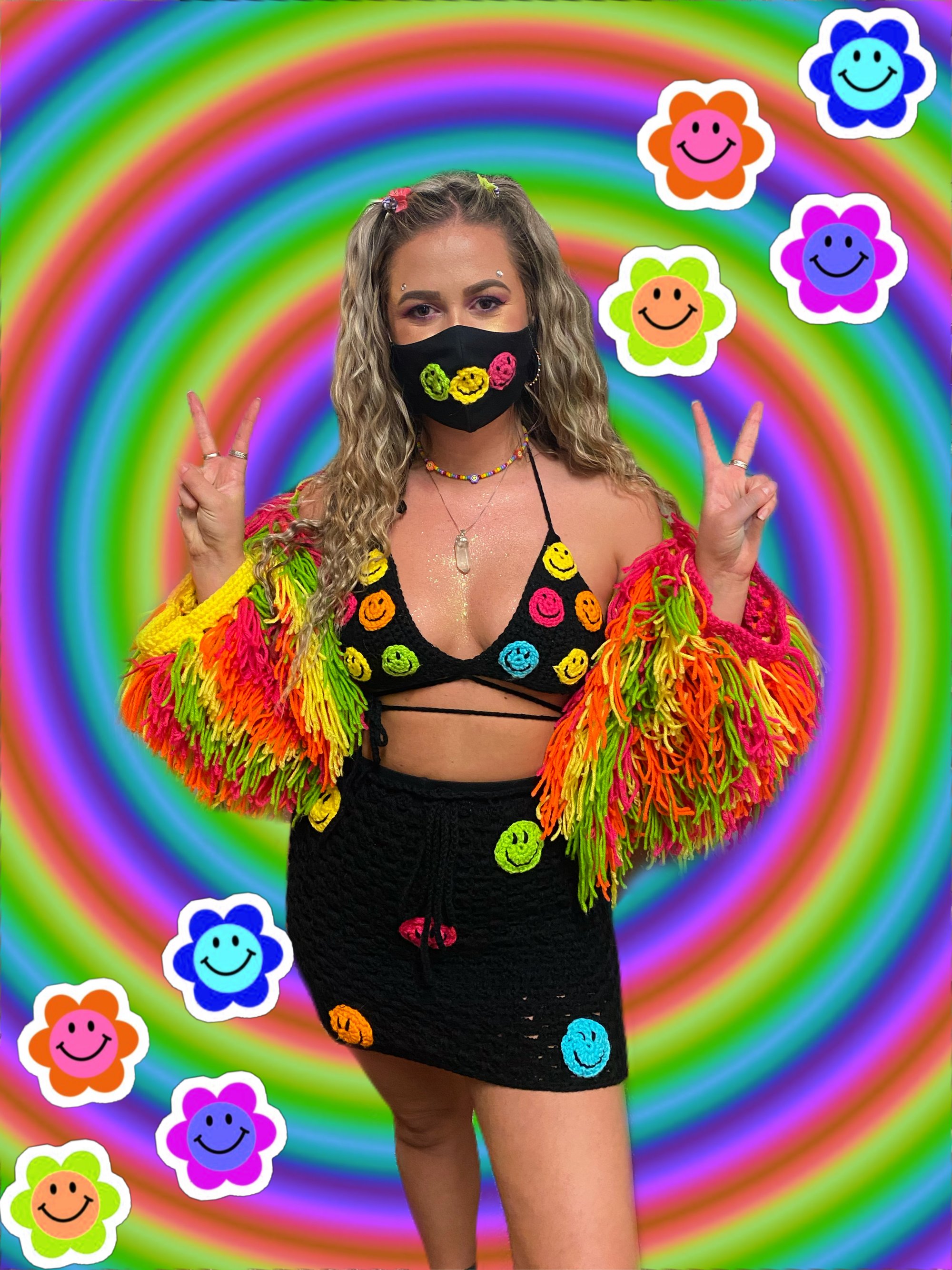 -All smiley faces are hand crocheted and sewn on by hand.